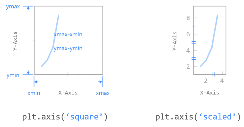 axis() 함수에 [xmin, xmax, ymin, ymax]의 형태로 X, Y축의 범위를 지정할 수 있다.