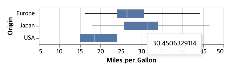 tooltip 인코딩의 필드가 집계되지 않으면 특이치 마크의 tooltip을 대체합니다. 반면에 tooltip 인코딩의 필드가 집계되면 Box Plot의 tooltip과 휘스커 마크를 대체한다.