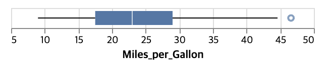 1D 상자 그림은 연속 필드의 분포를 보여준다. 상자 그림의 방향은 연속 필드 축에 의해 자동으로 결정다. 예를 들어 y축에 연속 필드를 인코딩하여 수직 1D 상자 그림을 만들 수 있다.