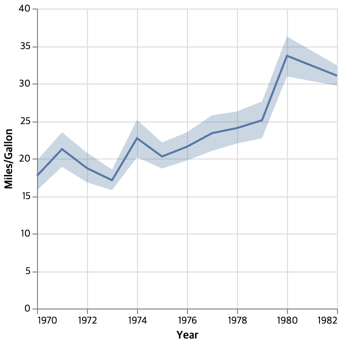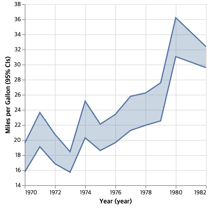 아직 데이터가 집계되지 않은 경우, Altair는 위의 신뢰 구간을 나타내는 Error Band에서 수행한 것처럼 마크 정의의 범위 속성을 기반으로 데이터를 집계한다. 다른 모든 범위 값은 오류 표시줄에 정의되어 있다.