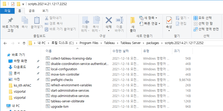 설치 과정 오류로 인해 tableau-server-obliterate 파일이 0KB(내용없음)인 경우도 있었다.