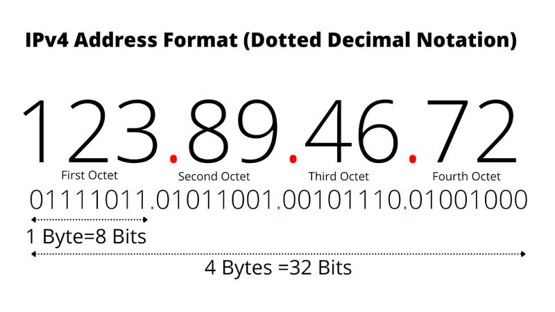 IPv4 : 32비트로 구성된 IP 주소로, 대략 43억 개의 고유한 주소를 생성할 수 있다. IPv4 주소는 4개의 0~255 사이의 숫자로 이루어져 있으며, 각 수자는 점(.)으로 구분된다. 예) 192.168.0.1