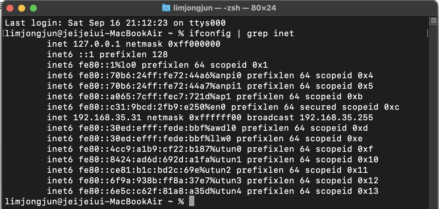 ifconfig | grep inet