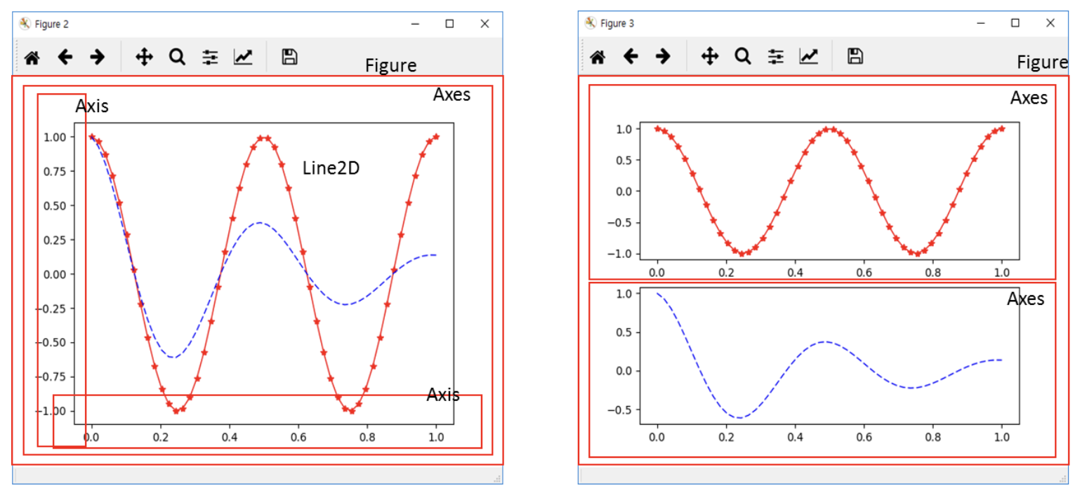 - 그림은 figure(액자)에 바로 그러지는 것이 아닌, ax(캔버스)에 그려지게 됨